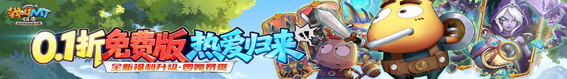 正版动画授权 3D 放置卡牌手游《我叫 MT:归来 - 0.1 折免费版》重磅来袭!0.1 折充值福利加持,每天免费送代金券,福利力度拉满!游戏完美再现动漫角色,让你与哀木涕、傻馒等经典形象再度相聚,带来纯正卡牌体验。玩家能组建五人小队勇闯艾泽大陆,上百种 BOSS、数十个大型副本每日更新,冒险不停;海量坐骑、宠物、神器可收集增强实力。战斗机制丰富,需巧用 “集火”、“控制” 应对特色 BOSS,考验策略。欢乐氛围中,既能与动漫角色并肩作战,又能畅享社交乐趣,快来开启传奇冒险!