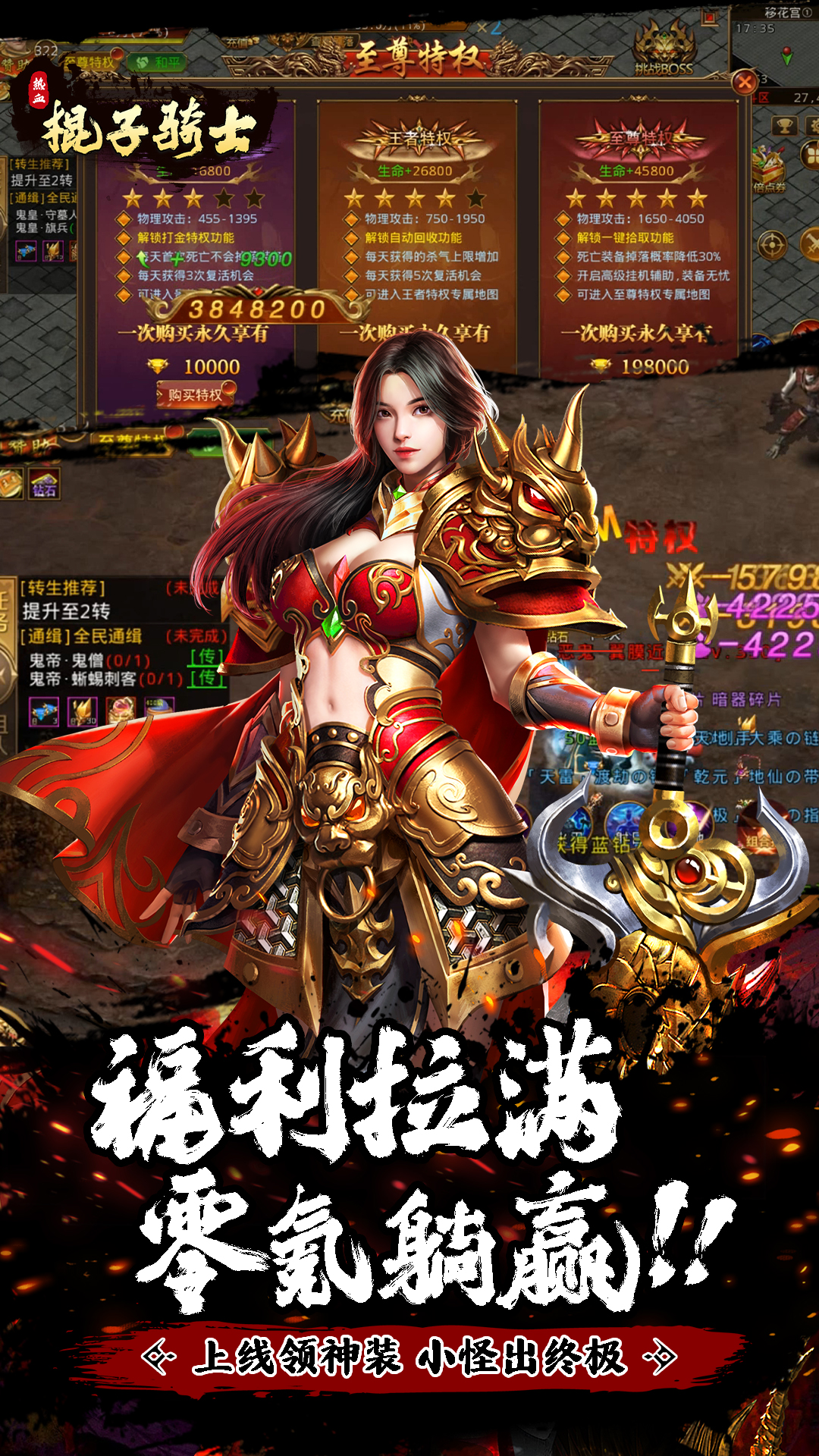 《棍子骑士(3.5折GM超变版)》这是一款单职超变打金的MMORPG,全新“商城”版本加入强力的“合技”系统玩法,融合技能合击玩法的元素。在玩法设计上,以“升级、爆装、合技”三大玩法为核心,同时增加:合技、巧匠、特戒、魂环、审判、神炉、时装、拍卖行、等多种精彩系统和玩法。BOSS任意击杀,炫酷连招效果开放全爆率!真诚欢迎所有骨灰级玩家加入《棍子骑士》与公会的兄弟们一起征战成就一代枭雄,感受属于真男人的热血战斗!