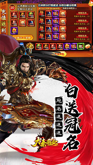 礼包内容:普通充值红包*300、等级丹+1卷*10、属性暴涨礼包*50