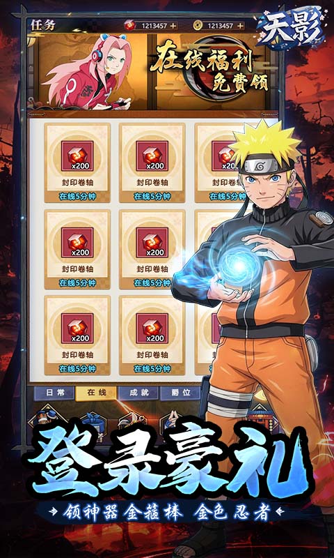 礼包内容:查克拉水晶*30,炸天妇罗*50,盐味拉面*50